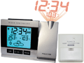 详细功能介绍:时间与室外温度投影,温度与时间切换显示,投影温度精确到1ºC。投影可以四方向旋转,长时间投影需要插变压器。室内机LCD有背光,无线室内外温度及室内湿度显示,时间显示,秒显示,地区时差,日期设置,周一至七设置,晴天、多云、下雨三种图标的天气预测预报,气象变化走向。有闹钟功能,闹铃声音在不同阶段有不同的响声频率,打盹功能可以让闹钟响后小睡5分钟后再闹。电波钟功能,支持德国DCF-77时码授时,在欧洲不需要手动设置时间,不过在中国收不到,具备解码的中国BPC 68.5KHz时码模块含线圈友店售价39元,可供改装。433MHz连接室内机与室外机(暂无多余室外机销售)。