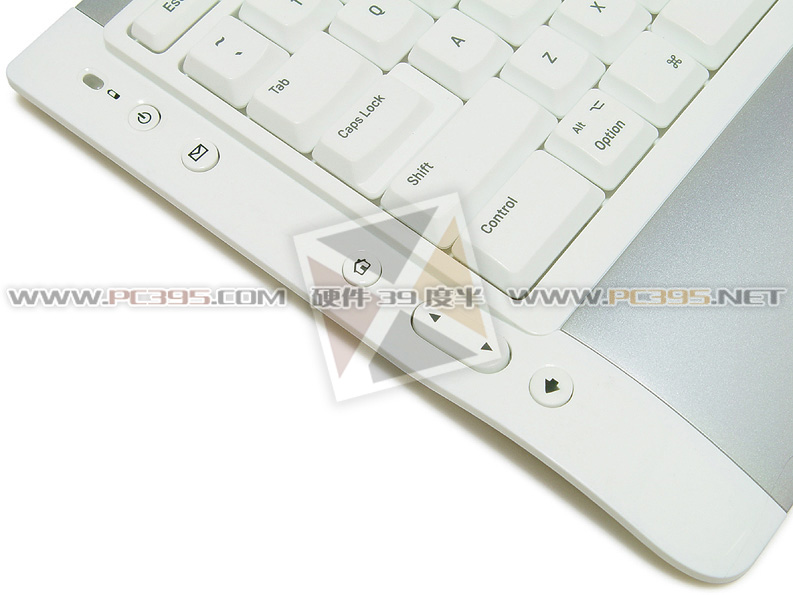 键盘左侧多媒体键区分别是:电源、电子邮件、主页、向上、向下、后退键和一个电量指示灯。
