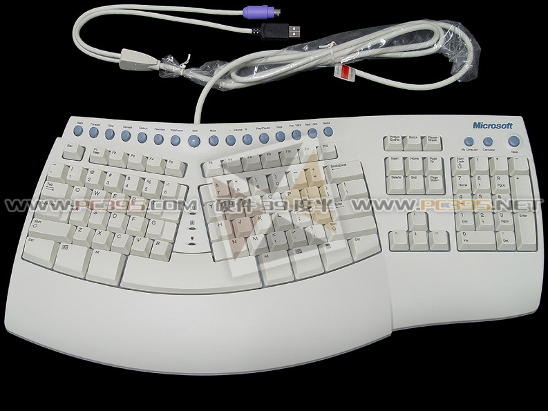 全新有包装Microsoft Natural Keyboard Pro RT9431双口带两口USB HUB人体工学多媒体键盘,9新非使用过,包装明显破损,键盘上没有明显划痕,只是放久了键盘线老化,粘在键盘上,有点痕迹。这样的一套249元。另有全新无痕迹的,299元,不含运费,键盘包装好超过2公斤。